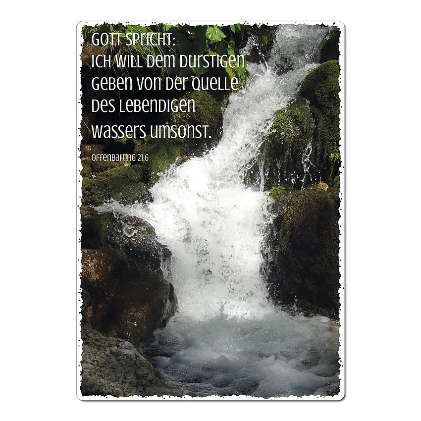 von der Quelle des lebendigen Wassers umsonst. Offenbarung 21,6" - Schild mit der Jahreslosung 2018