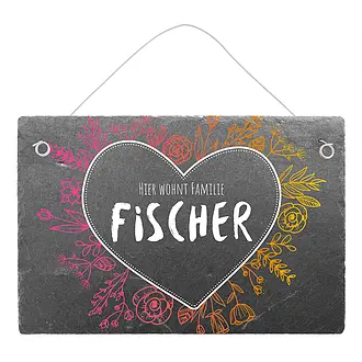 Das Schieferschild wurde im romantisch-floralen Design gestaltet. Dazu passend wurde die Schrift kombiniert.