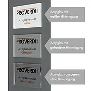 2. Gefrostet: Acrylschild mit Druck auf der Rückseite und hochwertiger rückseitiger Folienkaschierung in gefrosteter Optik