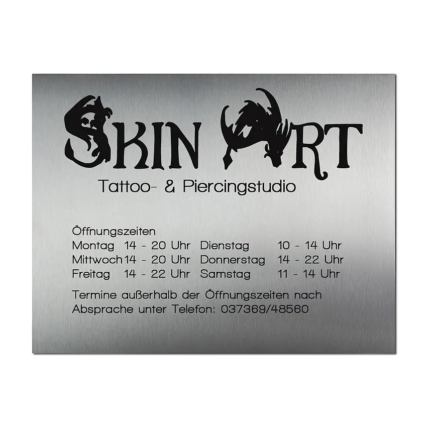 Mit diesem Firmenschild sorgen Sie für eine einmalig schöne, edle Beschriftung im Eingangsbereich, die sich durch exzellente Eigenschaften auszeichnet und Ihre Gäste, Kunden und Geschäftspartner nachhaltig beeindruckt. Ein Türschild aus Edelstahl ist für Praxen, Kanzleien, öffentliche Gebäude, für Privathäuser, sowie für Firmen aller Branchen die erste Wahl.