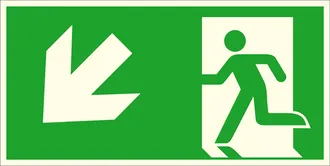 Die Schilder und Plaketten der Marke SafetyMarking dienen der vorschrifts- und normgerechten Kennzeichnung in Unternehmen, Behörden und öffentlichen Einrichtungen. Der Artikel Fluchtweg-Kombischild »Notausgang links, schräg abwärts « ohne mittlere Lichtkante hat die Form Querformat mit den Dimensionen/Abmessungen BxH: 40x20 cm, Materialstärke: 0,56 mm und ist gefertigt aus dem Material SafetyMarking langnachleuchtend HI 150 Aluminium. Er entspricht der Normung DIN EN ISO 7010 E002.