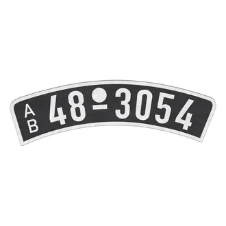 Das gebogene Kennzeichen aus der Zeit der Besatzungszone fertigen wir nach Ihren Vorgaben. Es handelt sich um die gebogene Form, die gewöhnlich auf dem vorderen Schutzblech befestigt wurde. Im Volksmund war dieses Kennzeichen auch als "Schädelspalter" bekannt. Das Kennzeichen ist eine Nachahmung nach Originalvorlage und wird nicht im Prägeverfahren, sondern per Digitaldruck hergestellt.