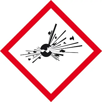Die Schilder und Plaketten der Marke SafetyMarking dienen der vorschrifts- und normgerechten Kennzeichnung in Unternehmen, Behörden und öffentlichen Einrichtungen. Der Artikel GHS-Gefahrenpiktogramm »Symbol 01: explodierende Bombe« hat die Form Quadrat mit den Dimensionen/Abmessungen BxH: 5x5 cm, Materialstärke: 0,1 mm und ist gefertigt aus dem Material PVC-Folie. Die Farbe ist weiss/schwarz-rot.