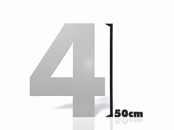 Große Zahlen sind auch von Weitem gut sichtbar. Deshalb empfehlen wir Edelstahlhausnummern in Übergröße besonders für Gebäude, die im Grundstück etwas entfernt von der Straße stehen. Die Höhe dieser Hausnummer beträgt 50 cm. Befestigungsmaterial, auch für wärmegedämmte Häuser, kann mitbestellt werden.