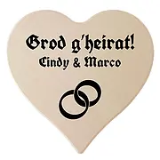 Als Material für diese Holzherzchen werden europäische Laubhölzer eingesetzt. Die Oberfläche ist fein geschliffen. Die Kanten sind abgerundet. Der Wunschtext wird mit schwarzer Farbe aufgedruckt.