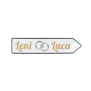 Metall Richtungspfeil mit den Namen des Brautpaares.
