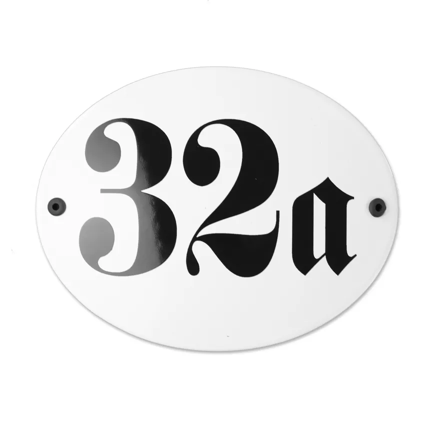 Das ovale Schild aus emailliertes Stahlblech hat die Maße 18,3 x 14,3 cm. Die Hausnummer aus Emaille in ovaler Form ist in manchen Regionen sehr stark vertreten und diese Menschen bleiben dieser Form treu, sie wird immer wieder bestellt. Die Hausnummer ist in der Abbildung in weißer Grundfarbe mit schwarzer Schrift gefertigt. Jedoch kann diese Hausnummer ganz individuell angepasst werden. Sie können aus Farben und Schriften wählen. Diese Hausnummer gibt es ausschließlich in gewölbter Form.