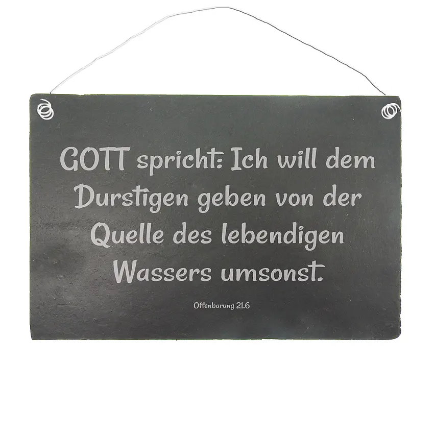 von der Quelle des lebendigen Wassers umsonst. Offenbarung 21,6 - Schieferschild mit der Jahreslosung 2018
