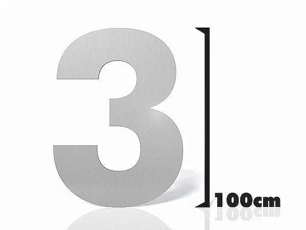 Sehr große Hausnummer aus Edelstahl - Ziffer 3