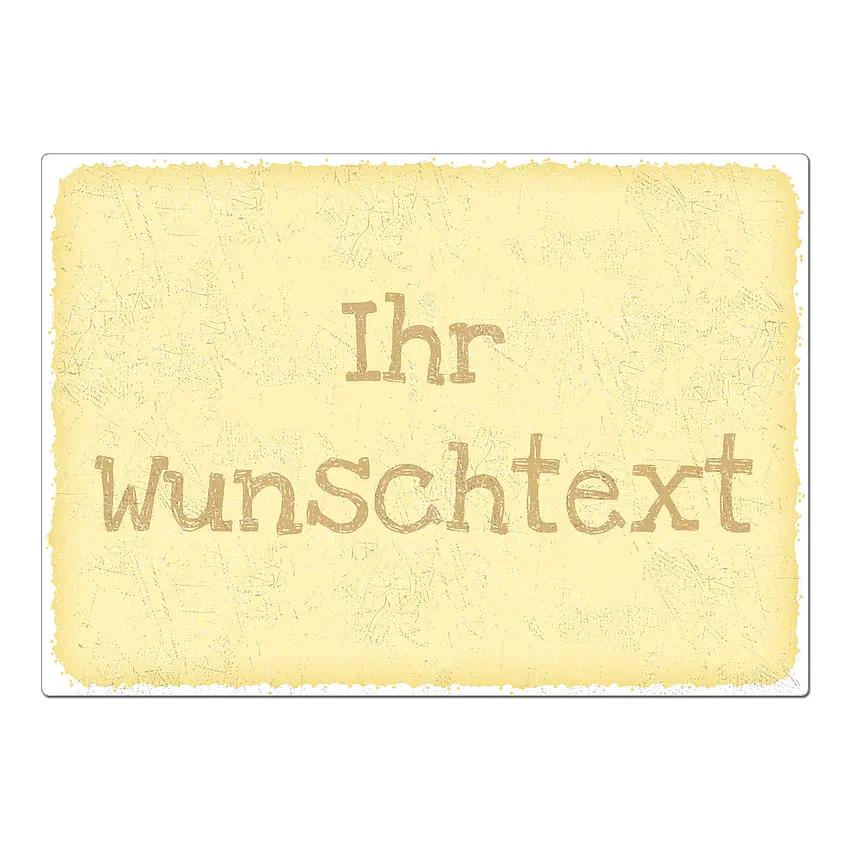 Shabby ist schick! Das gilt auch für dieses gelbe Türschild, das wir nach Ihren Wünschen in unserer hauseigenen Schilderfabrik produzieren. Es besteht aus Aluminium und gehört zu unserer beliebten Vintage-Serie. Wir drucken Ihren Wunschtext zusammen mit einem Symbol Ihrer Wahl auf das Schild.