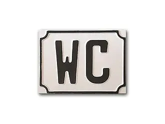 Bei diesem Schild handelt es sich um ein Toilettenschild aus Metall in der Größe 16 x 11 cm in der Grundfarbe weiß mit schwarzer geprägter Aufschrift - WC - .